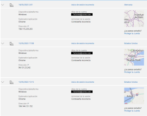 Intentos de inicio de sesión fallidos en localidades fuera del país del propietario (México)