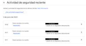 En cuentas Gmail puedes revisar en https://myaccount.google.com/ en el apartado de seguridad y después en “Actividad de seguridad reciente”